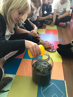com terra, água, ar e muda de tomate cereja foi organizado pela